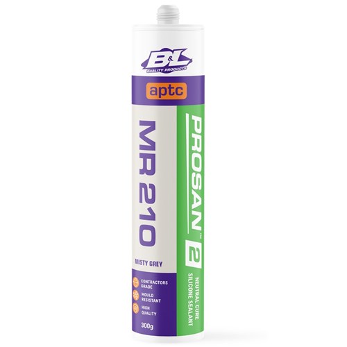 APTC Prosan2 MR210 Misty Grey is a premium contractors grade neutral cure mould resistant silicone sealant. Specially formulated as a wet area sealant, it is designed to resist the growth of mould and mildew in areas where high humidity and temperature exist such as bathrooms, kitchens and laundries.