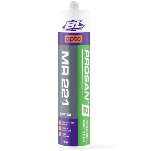 APTC Prosan2 MR221 Bluestone is a premium contractors grade neutral cure mould resistant silicone sealant. Specially formulated as a wet area sealant, it is designed to resist the growth of mould and mildew in areas where high humidity and temperature exist such as bathrooms, kitchens and laundries.