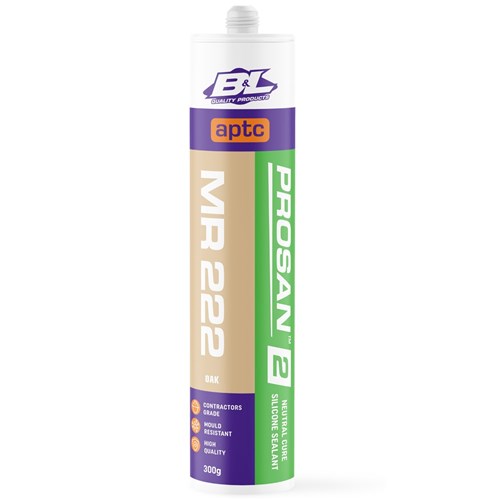 APTC Prosan2 MR222 Oak is a premium contractors grade neutral cure mould resistant silicone sealant. Specially formulated as a wet area sealant, it is designed to resist the growth of mould and mildew in areas where high humidity and temperature exist such as bathrooms, kitchens and laundries.