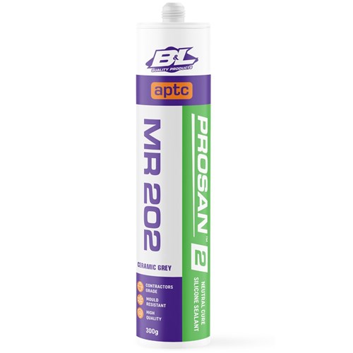 APTC Prosan2 MR202 Ceramic Grey is a premium contractors grade neutral cure mould resistant silicone sealant. Specially formulated as a wet area sealant, it is designed to resist the growth of mould and mildew in areas where high humidity and temperature exist such as bathrooms, kitchens and laundries.