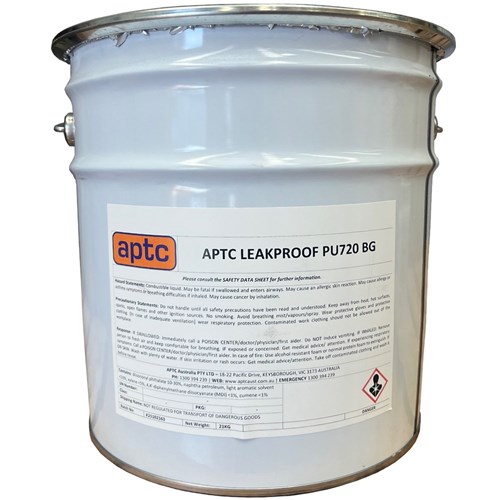 APTC Leakproof PU720 BG is a high performance, low VOC elastomeric polyurethane waterproofing membrane formulated for use in below ground waterproofing applications. Single-pack and ready to use, it cures to form a seamless, durable, and permanently flexible coating with high puncture resistance and anti