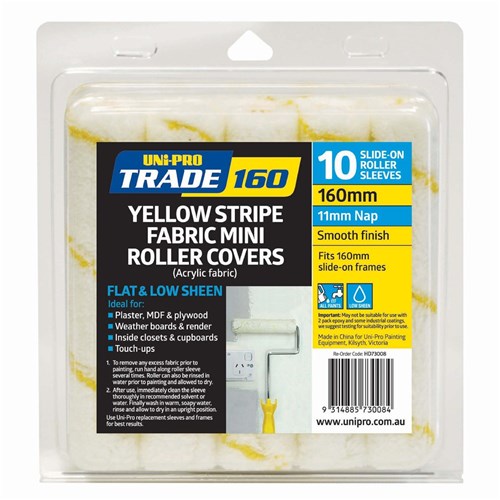 Uni Pro Little Ripper Mini Roller Cover 10pk yellow stripe fabric mini roller cover designed for use with Uni Pro Mini Slide On Frames.