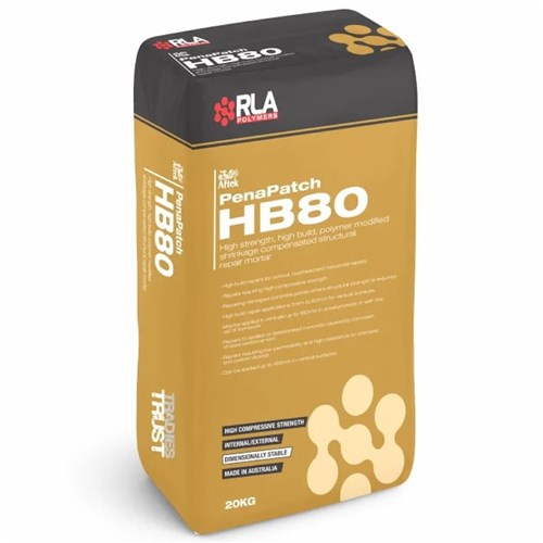 RLA Penapatch Structural Repair Mortar HB80 is a high-strength, high-build, shrinkage compensated structural repair mortar designed for vertical and horizontal applications. The specially selected blend of cements and polymers in RLA Penapatch HB80 provide a mortar with strong ultimate compressive strength, high abrasion resistance, and tenacious adhesion to concrete and masonry surfaces.