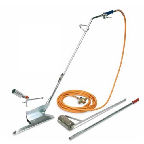 Calloni Lap Torch Kit designed for the dry application of modified bitumen membranes, when the membrane is not applied to the surface, but only welded on the overlaps. Manufactured from chromium plated iron, it is equipped with a powerful flame and protection system to avoid extinguishing of the flame, aluminium and steel bell heads to withstand high temperatures and a specially shaped hand grip.